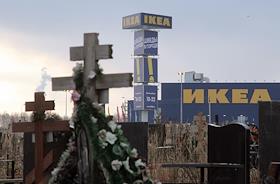 Вывеска торгового центра "ИКЕА" напротив кладбища Федяково.