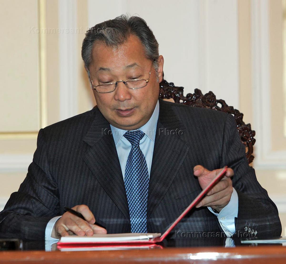 Президент Киргизии Курманбек Бакиев во время подписания проекта конституции, принятый накануне…