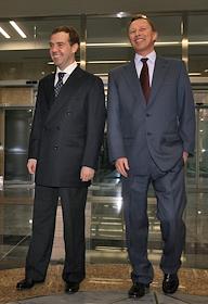 Первый заместитель председателя Правительства России Дмитрий Медведев (слева) и министр обороны…