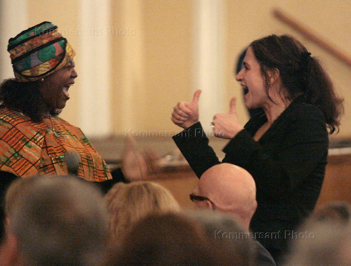 Джазовый ансамбль из Нью-Йорка "Гарлем Госпел Хор" во время сольного концерта в Большом зале…
