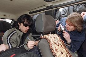 Певец Найк Борзов в машине дает автограф своим поклонникам перед началом концерта немецкой группы…