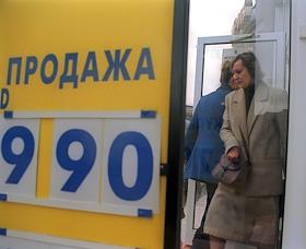 People leave a currency exchange office during August crisis in 1998.