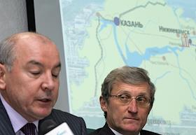 Генеральный директор ЗАО "Нижнекамский нефтеперерабатывающий завод" Хамза Багманов (слева) и…