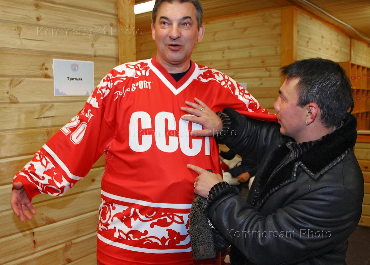 Олимпийские чемпионы по хоккею: Владислав Третьяк (слева), Сергей Макаров (справа), Вячеслав Фетисов…