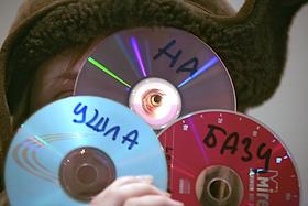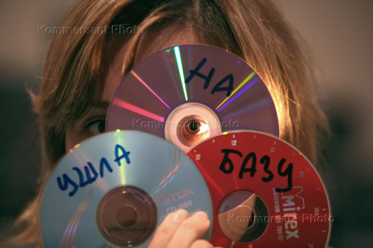 Жанр фото. Диски и объявление написанное на них "Ушла на базу"