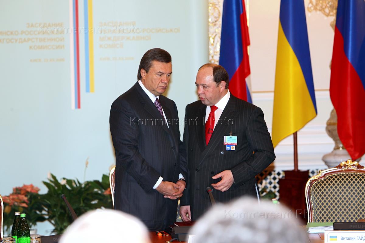 Премьер-министр Украины Виктор Янукович (слева) во время первого заседания Российско-Украинской…