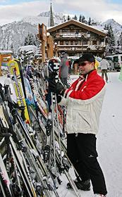 Русский новый год в Куршевеле. Продюсер Андрей Шлыков во время катания на лыжах на горнолыжном…