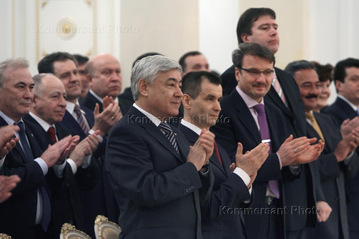 Выездное заседание президиума Госсовета. Президент Башкирии Муртаза Рахимов (в центре) во время…