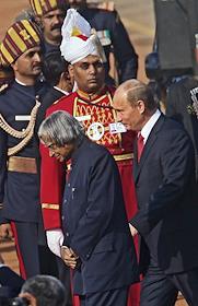 Президент Индии Абдул Калам (слева) и Президент России Владимир Путин (справа) во время военного…