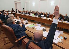 Председатель Центральной избирательной комиссии (ЦИК) России Александр Вешняков (слева) на заседании…
