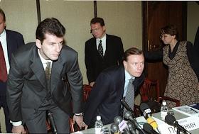 Председатель правления "ОНЭКСИМ" Михаил Прохоров (слева) и президент банка "ОНЭКСИМ" Владимир…