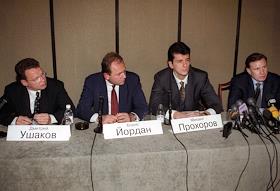 Дмитрий Ушаков (слева), Борис Йордан (второй слева), Председатель правления "ОНЭКСИМ" Михаил…