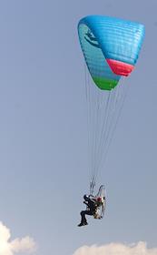 Полет парашютиста с пропеллером над аэродромом Тушино во время Второго музыкального рок-фестиваля…