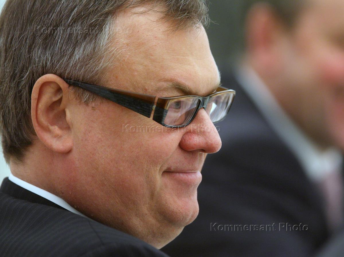 За столом справа налево: директор Новолипецкого металлургического комбината Владимир Лисин,…