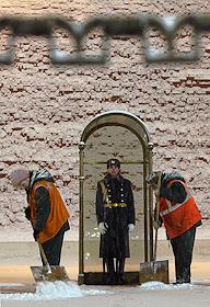 Солдат роты почетного караула на посту у Вечного огня на Могиле Неизвестного солдата в…