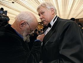 Фотокорреспондент ИД "Коммерсантъ" Юрий Мартьянов (слева) и президент Гильдии профессиональных…