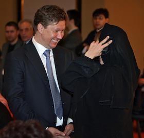 Председатель правления ОАО "Газпром" Алексей Миллер (слева) во время встречи Президента России…