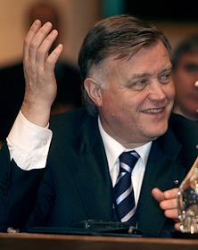 Председатель Совета директоров компании "Базовый элемент" Олег Дерипаска (слева) во время встречи…