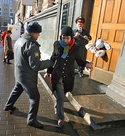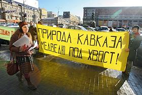 Экология Акция радикально-экологического движения "Хранители Радуги", приуроченная к приезду оценочной комиссии МОК в город Сичи, где в 2014 могут состояться олимпийские игры у здания Министерства экономического развития и торговли России.