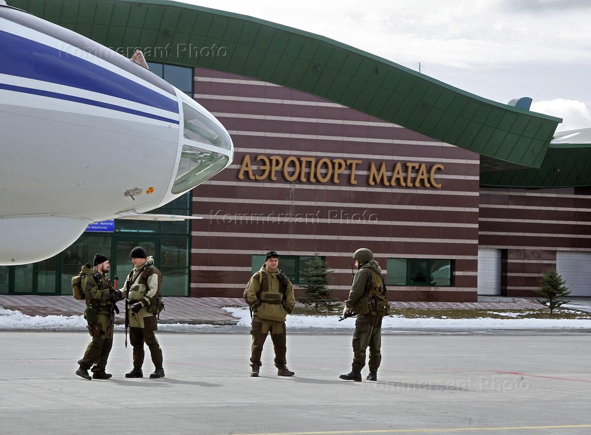 Военнослужащие на взлетном поле аэропорта "Магас".