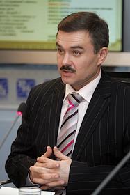 Президент - председатель правления Первого республиканского банка Юрий Прыгаев на пресс-конференции,…