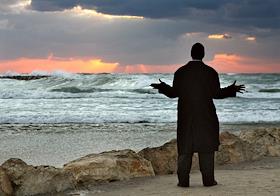 Нищий человек просит милостыню на улице города Тель-Авива.