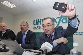 П/к, посвященная первым итогам судебного разбирательства по иску, поданному компанией RussGPS против компании Motorola, и встречному иску Motorola против RussGPS, в центральном офисе агентства "Интерфакс".