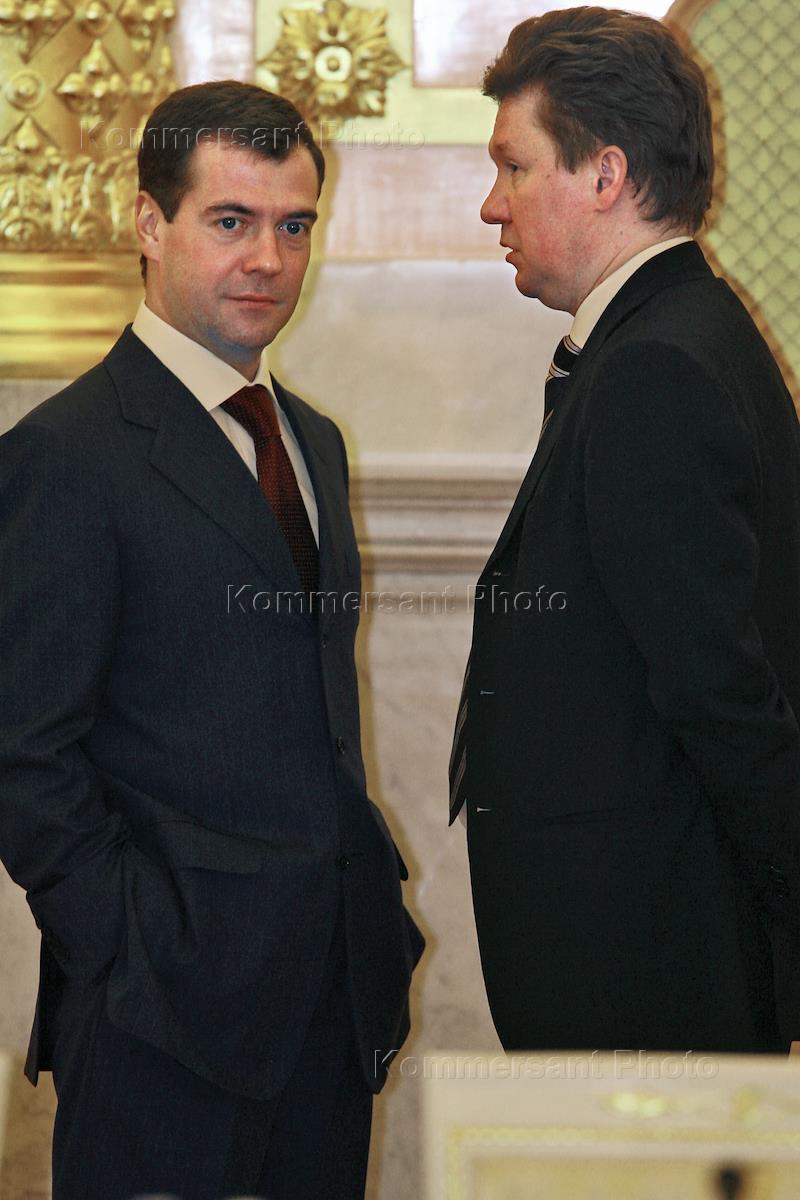Председатель правления ОАО "Газпром" Алексей Миллер (слева) первый заместитель председателя…