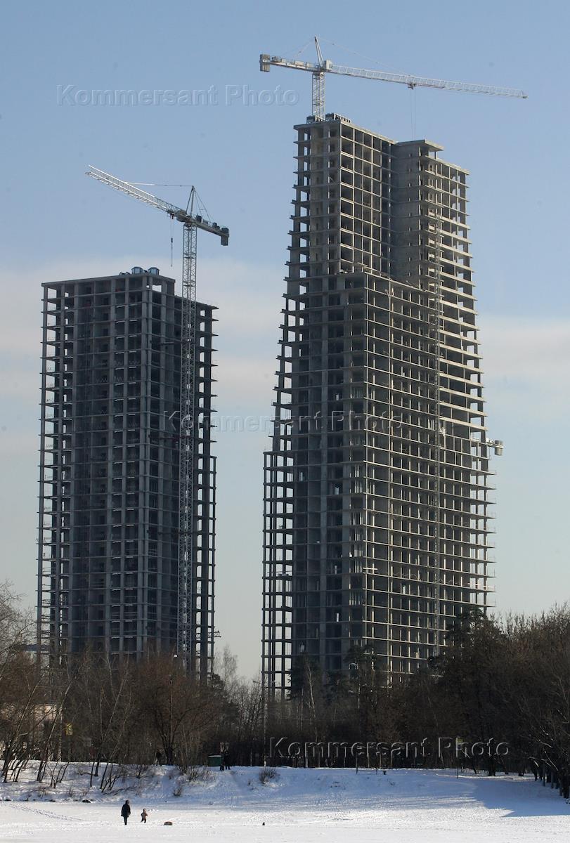 Строительство высотных жилых домов на Ленинградском шоссе.