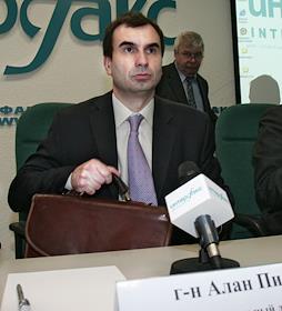 Генеральный директор ЕБРР по России Алан Пилу (слева) во время пресс-конференции на тему: "УРСА Банк…