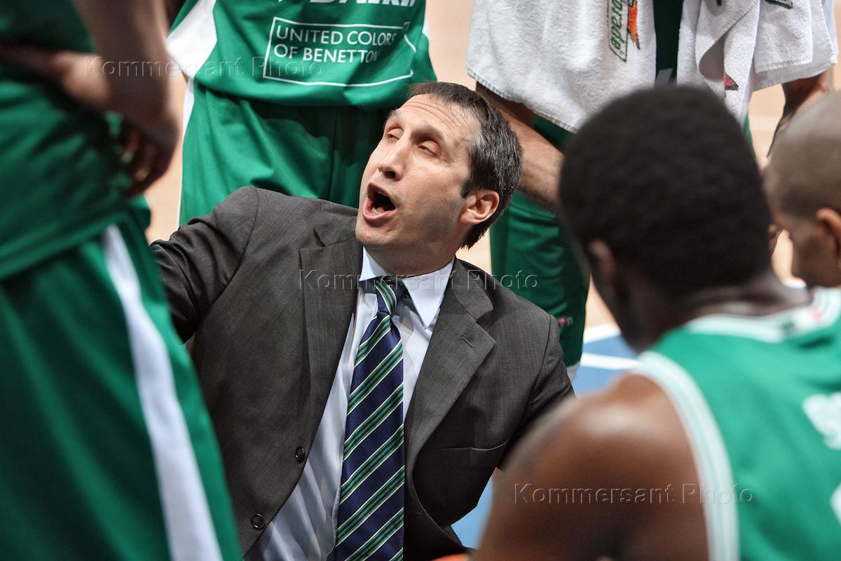 Матч Евролиги 2006/2007 по баскетболу между мужскими клубами. Главный тренер итальянского…