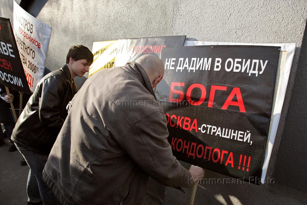 Пикет против выставки "Запретное искусство - 2006" прошел у здания музея и общественного центра…