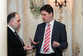 Генеральный директор компании "Центел" Владислав Лантух (слева) и генеральный директор ОАО…