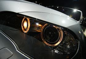 Презентация автомобиля БМВ X5 (BMW) на нижегородской ярмарке. Передние фары с подсветкой.