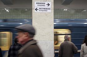 Указатели на колонне станции метро "Юго-Западная" - "Хованское кладбище" и "Востряковское кладбище".