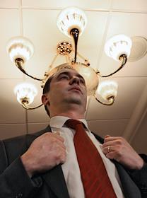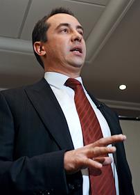 Генеральный директор интернет-магазина "OZON.ru" Бернар Люке (справа) на пресс-конференции,…