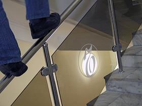 Мужчина стоит на поручне лестницы в здании Издательского Дома "КоммерсантЪ".