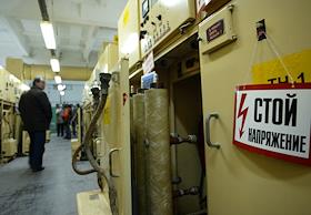 Табличка "Стой. Напряжение" в щитовой на электроподстанции "Нижновэнерго".