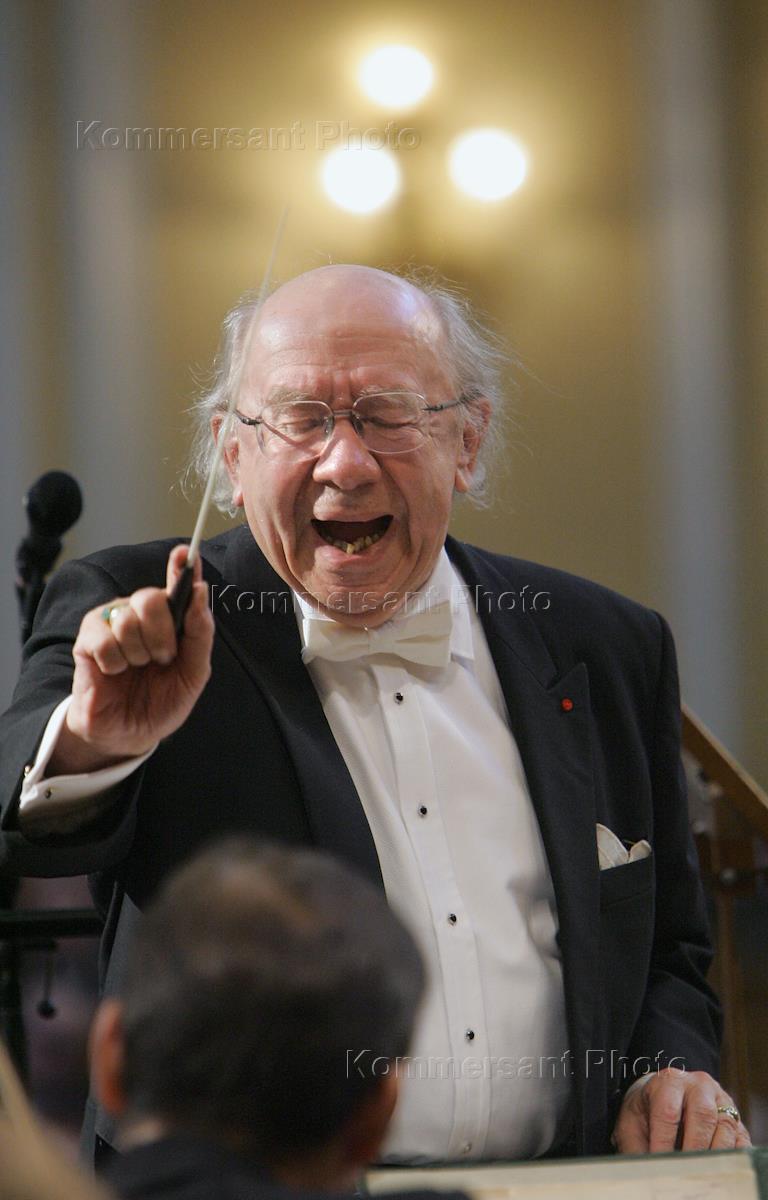 Дирижер Геннадий Рождественский во время выступления на концерте с Государственной академической…