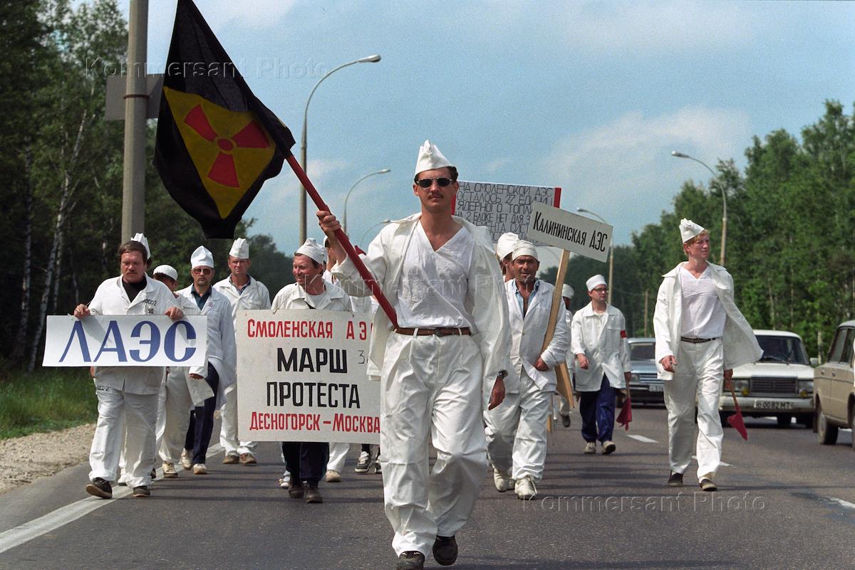 Марш в связи с проблемой в ядерной сфере. Марш протеста на Москву коллективов АЭС. Задолженности атомщикам за поставленную электроэнергию.
