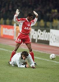 Нападающий московской команды "Спартак" бразильский футболист Луис Робсон (стоит) во время…