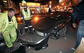 На Новом Арбате водитель "Феррари" не справился с управлением и, вылетев на тротуар, врезался в парапет подземного перехода.