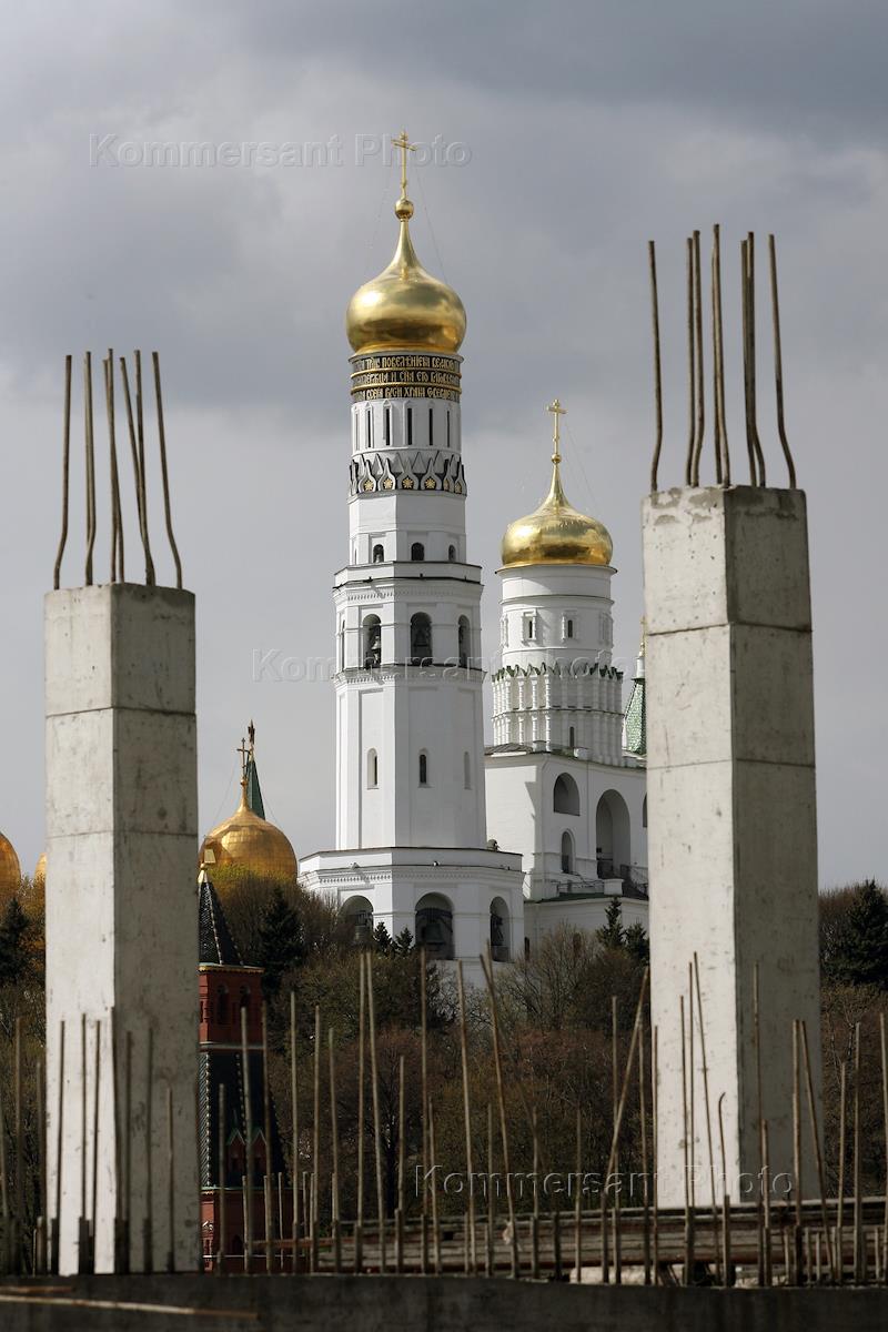 Виды Москвы. Колокольня Ивана Великого на территории Кремля и строительные опоры на строительстве…