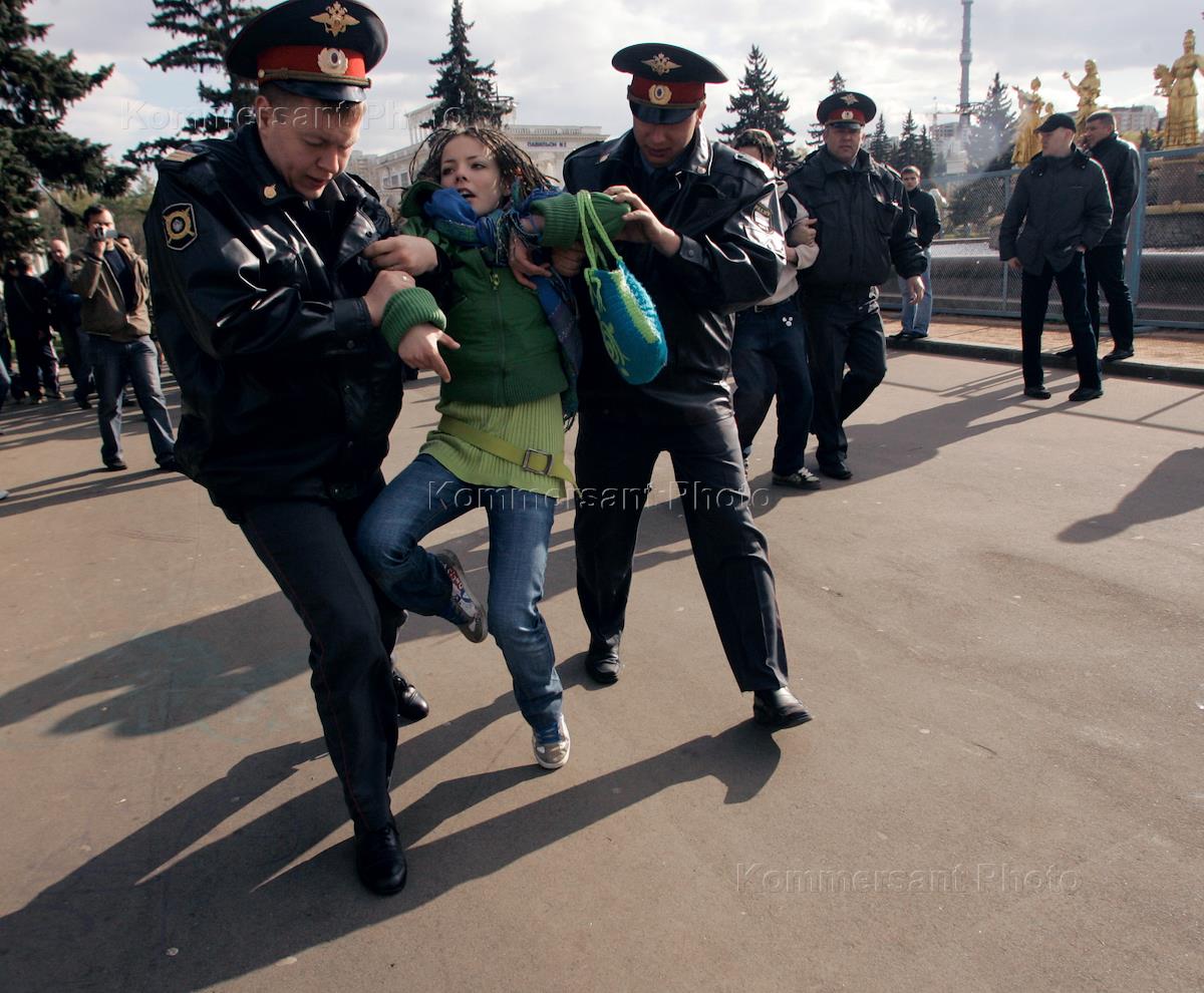 Общество Акция "Конопляные гуляния" за легализацию мягких наркотиков (марихуаны) у фонтана "Дружбы народов" на Всероссийском выставочном центра (ВВЦ). Задержание участников