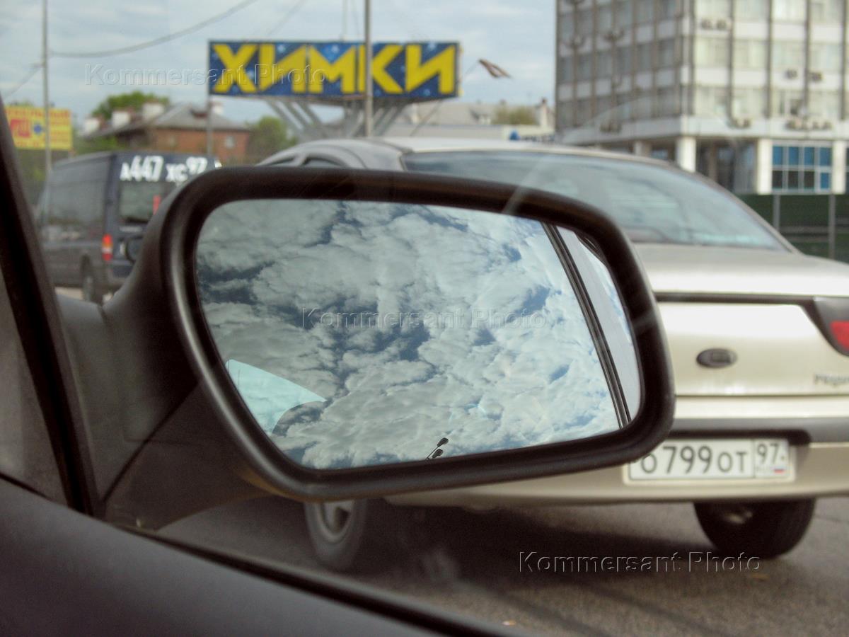 Жанровое фото. Зеркало бокового вида автомобиля. Ленинградское шоссе.
