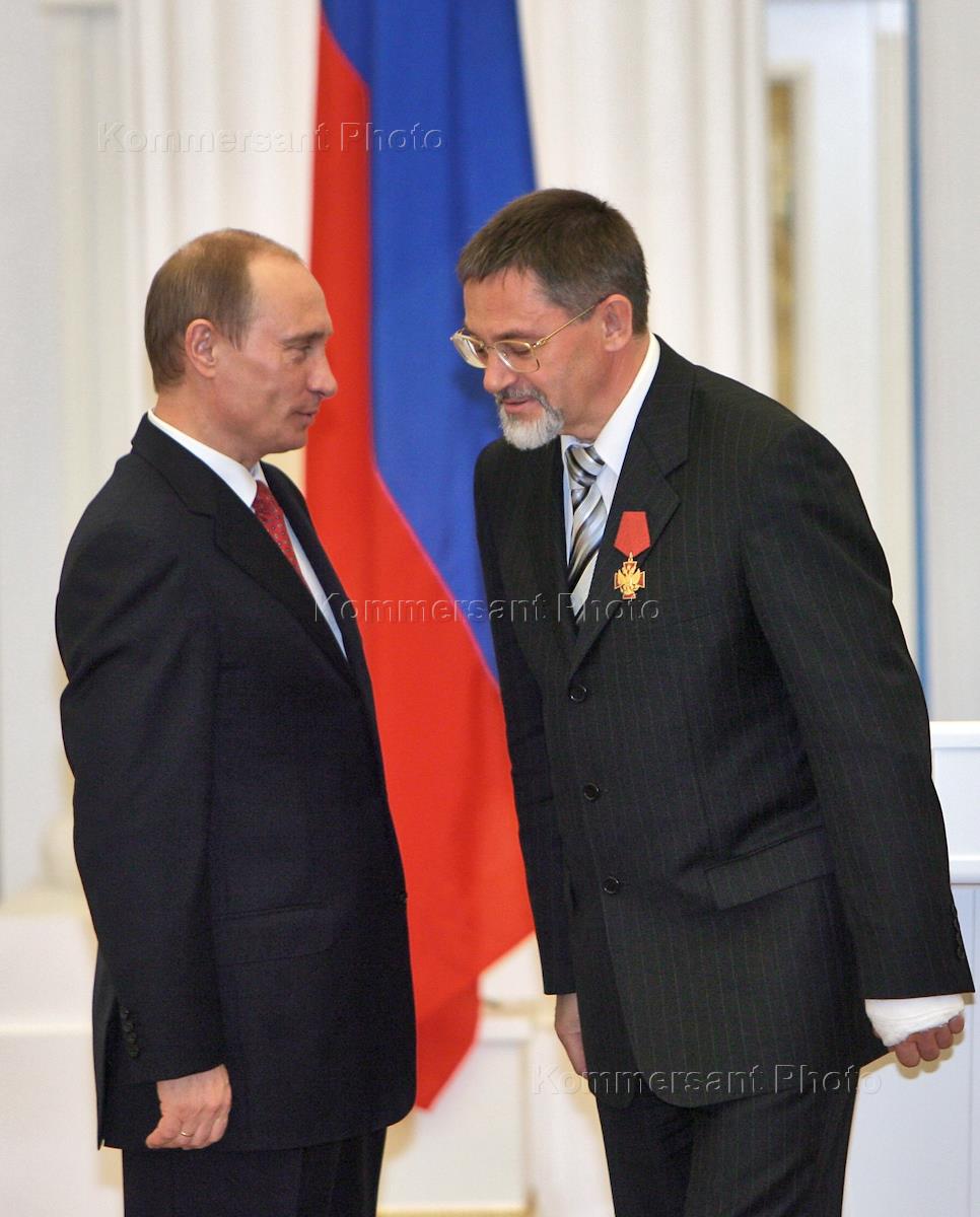 Президент России Владимир Путин (слева) и актер Александр Домогаров (справа) во время церемонии…