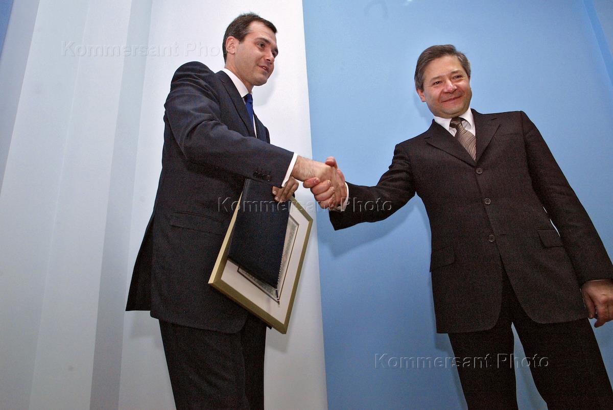 Генеральный директор ОАО "МегаФон" Сергей Солдатенков (слева), президент ОАО "Мобильные ТелеСистемы"…