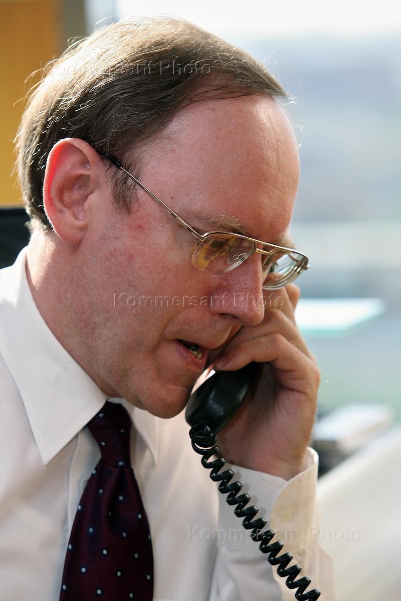 Председатель правления ЗАО "Райффайзенбанк Австрия" Йоханн Йонах во время интервью в своем рабочем…
