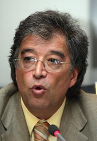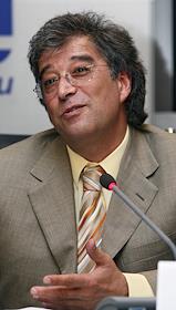 Экономика и бизнес Президент банка "Home Credit" Е.Бернштам на пресс-конференции, посвященной подписанию соглашения о стратегическом сотрудничестве банка "Home Credit" и розничной сети по продаже бытовой техники и электроники "Эльдорадо" в Риа Новости. Учавствует также вице-президент сети "Эльдорадо" Б.Ван дер Вельде.