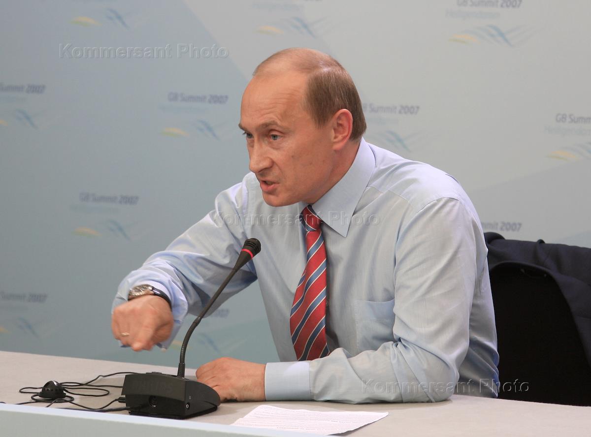 Саммит "G8" ("Большой восьмерки"). Президент России Владимир Путин во время пресс-конференции по…